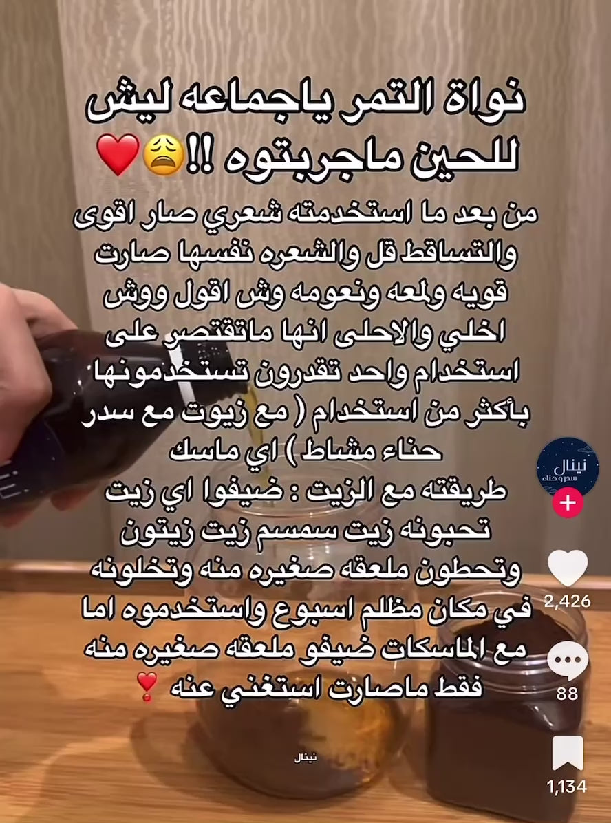 Date seed powder adds shine and softness when used as a mask, and its oil works great as a conditioner.